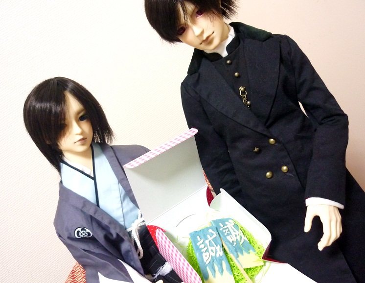 どーでもいいけど、この写真撮るとき、なかなか立ってくれなくて大変で、もういいや花束持たせてから改めて調節すればいいや、と思って持たせてみたら一発で立った、と言う……副長、何その妙なやる気。意味判らないよ。あと、消えてなければ梅の香りがすると思います。香水付けさせたので。