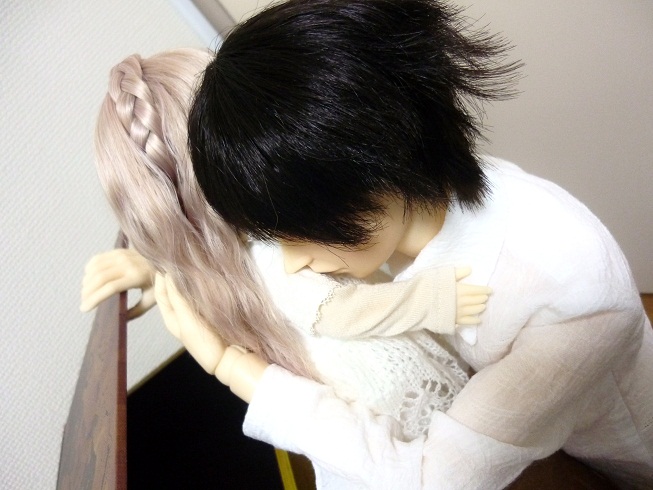 これは比較的まともですが、久しぶりに出したウィッグだった上に、風が強かった(ベランダで撮ってました) ので、乱れ髪を通り越して、なんだかやばいことになってました。髪紐を持たせてみたら「括れ」って言ってるみたいでした。可愛いなあ。格好いいなあ。ああ、もう。