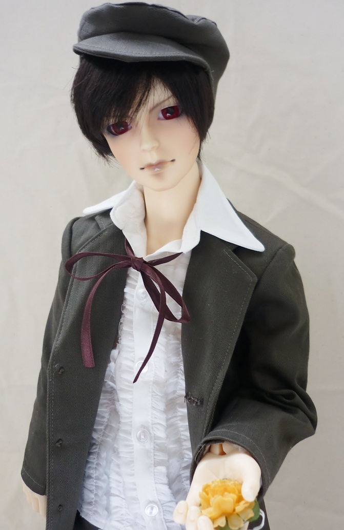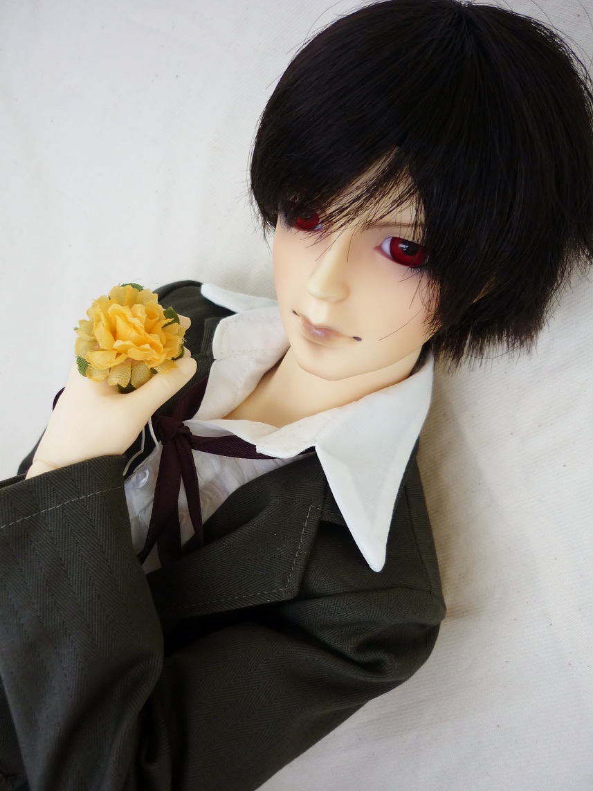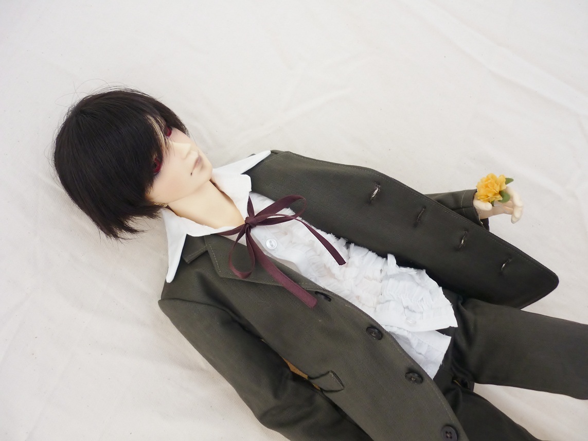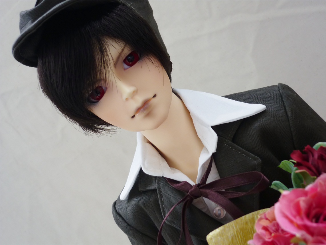 どーでもいいけど、この写真撮るとき、なかなか立ってくれなくて大変で、もういいや花束持たせてから改めて調節すればいいや、と思って持たせてみたら一発で立った、と言う……副長、何その妙なやる気。意味判らないよ。あと、消えてなければ梅の香りがすると思います。香水付けさせたので。