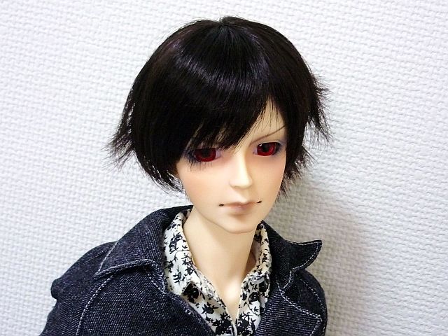 赤目はキツくなりがちなんだけど、大きめのものを選んだ所為か、割合に優しげな雰囲気になりました。ちなみに、デフォは16mmでしたが、これは18mm 1サイズ大きくしてあります。そうしないと、全自動で三白眼だったので……副長が三白眼だと、なんか三白眼ってゆーより白眼視されてる気分だったんだもん。