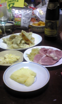 そしてワインはドイツワインの白。んまいです。シュヴァルツ・カッツェって言う、名前そのまんま黒猫ちゃんがラベルについているのがお気に入り。